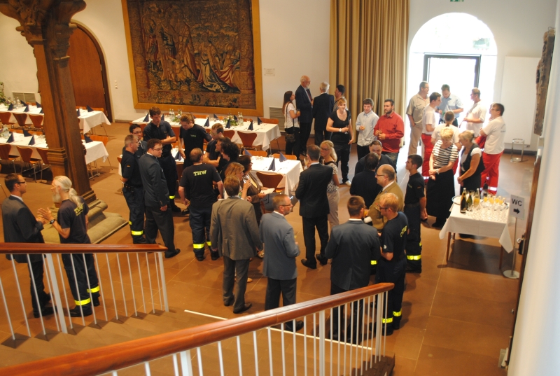 Helferinnen und Helfer aus den Hochwassereinsätzen wurden vom Oberbürgermeister im Rathaus ehrenvoll empfangen.