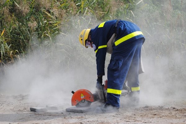 Gesteinsbearbeitung. Im Mittelpunkt stand der Umgang mit den Trennschleifern