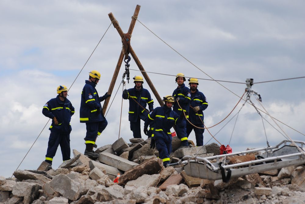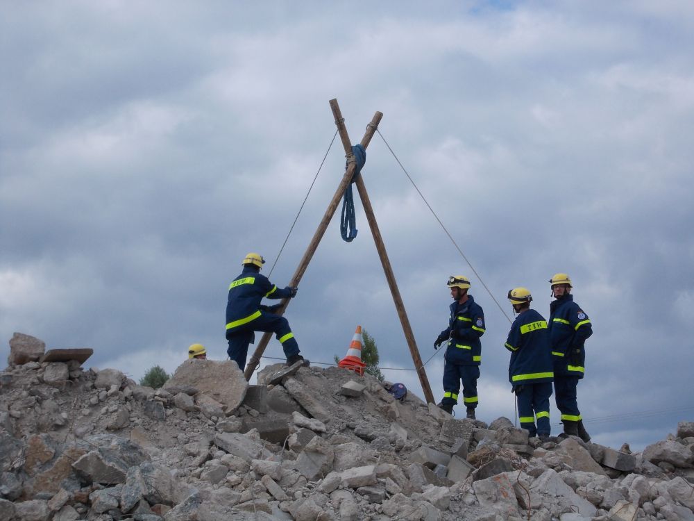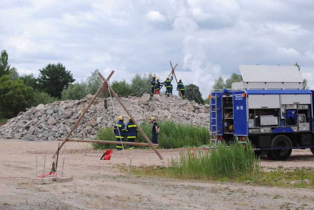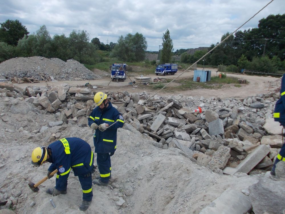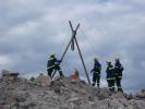 Ausbildung ganz nah an der Realität. Die Aufgabe war einen Trümmerhaufen zum Material- und Verletztentransprot zu überwinden.