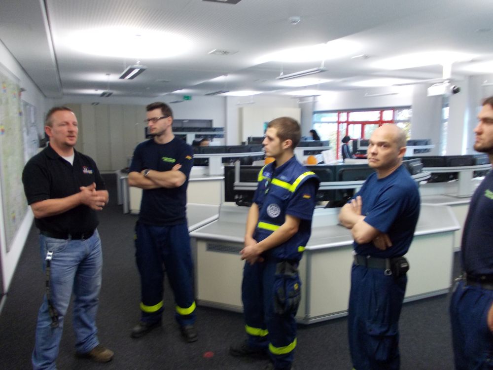 Die Integrierte Leitstelle Schweinfurt (ILS) hat den THW-Ortsverband Schweinfurt zu einer Besichtigung eingeladen. Am Samstag Vormittag war es so weit. Die erste Gruppe hat sich um 9:00 an der ILS im Schweinfurter Hafen eingefunden. Auch aus der Jugendgruppe waren Vertreter dabei. Dass Theorie nicht langweilig ist, hat sich bei der einführenden Präsentation zur ILS gezeigt. Es wurde die Strukturierung der ILS dargelegt, auf die Ausbildung der ILS-Mitarbeiter eingegangen und der Aufgabenumfang aufgezeigt. Keiner der aus der THW-Gruppe hat gedacht dass am Tag ungefähr achtzig Falsch-Notrufe – Anrufe bei denen sich keiner meldet – bei der ILS eingehen. Das es wirklich so ist, haben die THW-ler am Rande der Führung in der Notrufzentrale selbst mitbekommen – in der guten halben Stunde waren es mindestens vier dieser Falsch-Notrufe. An einem der im Normalbetrieb nicht besetzten Arbeitsplätze wurde der THW-Gruppe über eine Simulation ein Notruf und die daraus folgende Alarmierung vorgeführt. Schon beeindruckend – die Meldung geht ein und wird mit Schlagworten ins System eingegeben. Das System sucht aus den hinterlegten Einsatzmustern die Einsatzkräfte aus der Umgebung aus und zeigt sie an. Der ILS-Mitarbeiter wählt die Einsatzkräfte aus. Das System alarmiert diese Einsatzkräfte über Sirene oder Funkmelder. Auf diese Weise wird der gesamte Einsatz über die ILS koordiniert und unterstützt – und dokumentiert. Schon interessant, mehr über die ILS gehört und gesehen zu haben – und wir wissen jetzt genauer, was hinter dem „ILS-Schweinfurt – Kommen“ am Funkgerät steckt.