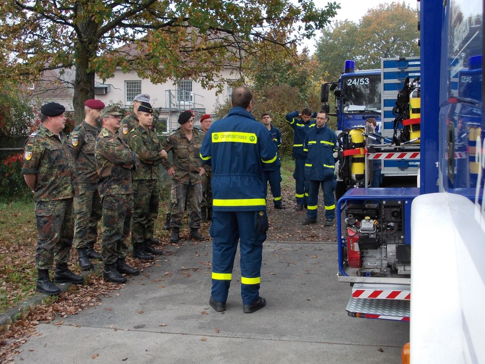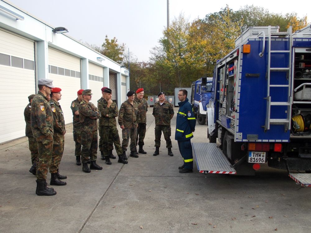 Das Kreisverbindungskommando stellt im Einsatzfall die Verbindung zwischen der Einsatzleitung und den verschiedenen Land-, Wasser- und Luftverbänden der Bundeswehr dar. Die Herren des Kreisverbindungskommandos haben sich bei diesem Besuch über die Struktur des THW und die vielseitigen Einsatzmöglichkeiten der THW-Ortsverbände mit ihren Bergungsgruppen und den unterschiedlichen Fachgruppen informiert. Die notwendige Theorie wurde durch eine Führung durch den Ortsverband und die Erklärung der Gerätschaften abgerundet.