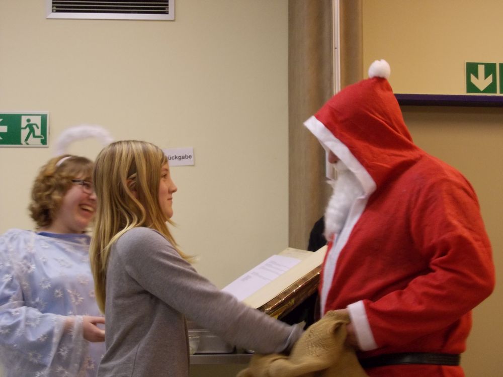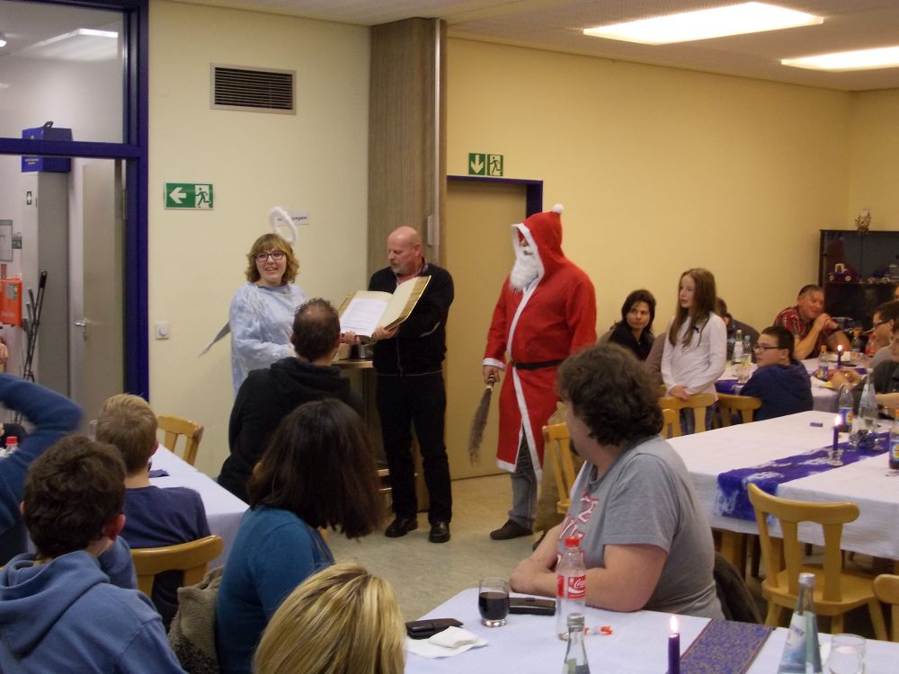 Kurz vor dem dritten Advent fand die alljährliche Weihnachtsfeier im THW Ortsverband Schweinfurt statt. Mit Familie und Freunden waren viele der Senioren, der Helferinnen und Helfer und der Jugend der Einladung gefolgt. In seiner kurzen Rede hat der Ortsbeauftragte Jörg Opper mit Stolz die Einsätze in der Nähe und im Ausland angesprochen, bevor er das Buffet eröffnete. Nach dem Essen gab es einige interessante Tischgespräche während die Nachzügler noch mit dem Buffet beschäftigt waren. Plötzlich wurde das gemütliche Beisammensein durch ein starkes Rumpeln an der Tür unterbrochen – das konnte nur der Weihnachtsmann und das Christkind sein. Sie brachten ein großes goldenes Buch mit, in dem so Einiges stand. Da war es kein Wunder, dass sich die Helfer beim Halten des schweren Buches abwechseln mussten. Aber nicht nur die Jugend wurde beschenkt. Auch einige besonders brave Erwachsene durften in den großen Sack greifen. Christkind und Weihnachtsmann hatten im Anschluss noch etwas Zeit für Gruppenfotos. Im Saal gingen indes die Gesprächsrunden weiter und so konnte man auch die alte und neue Generation der Jugendbetreuer beim Gedankenaustausch beobachten.