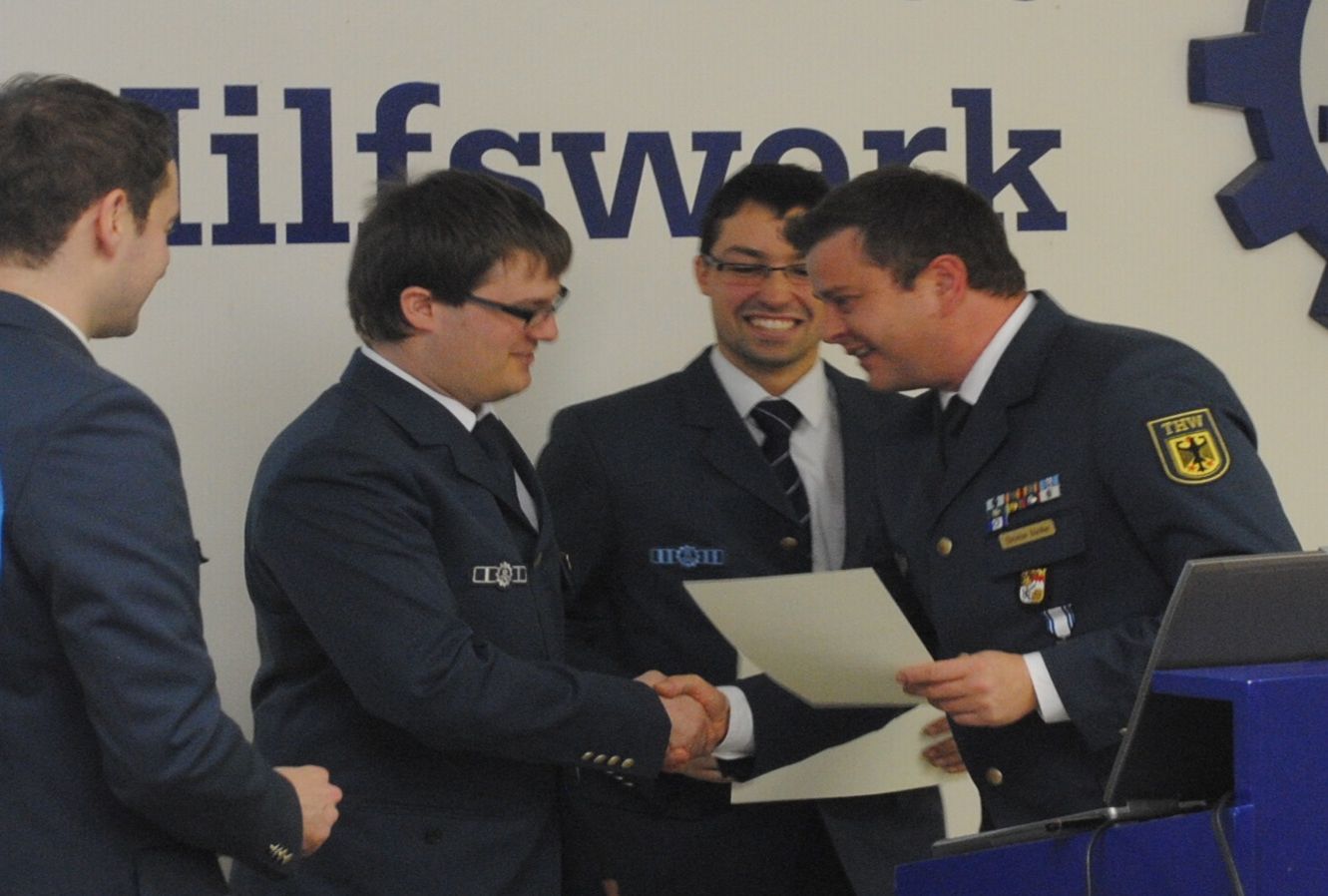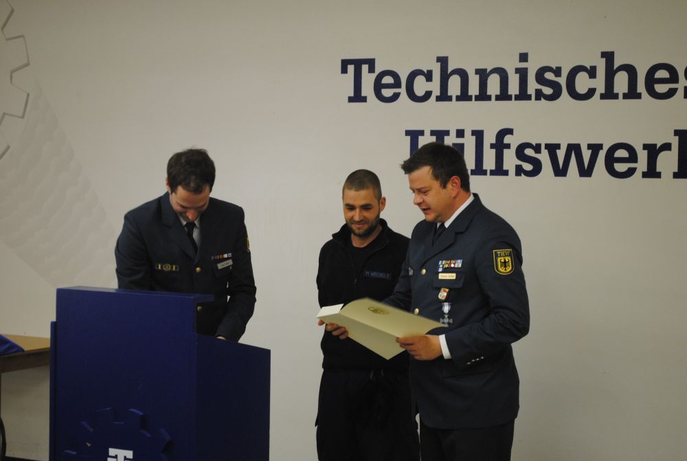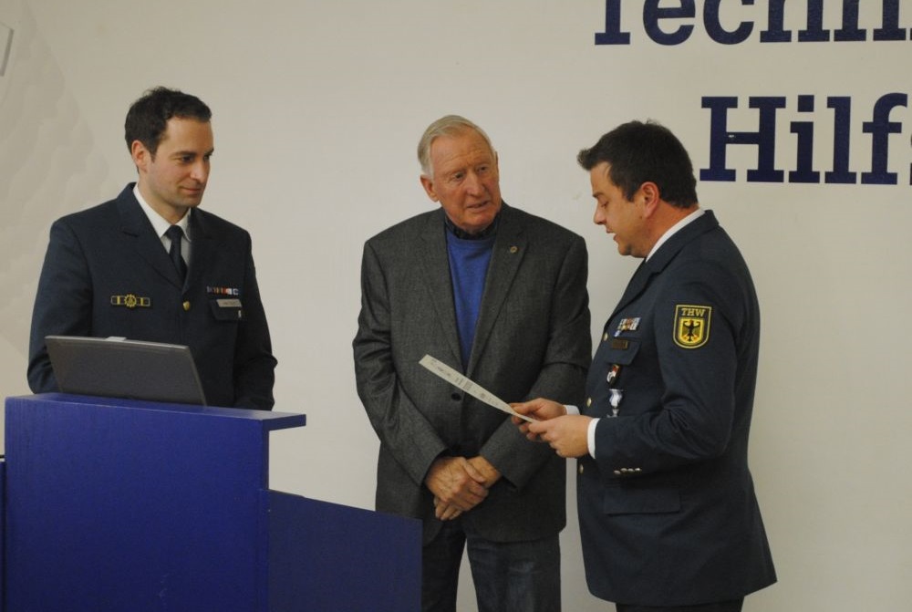 Helfer für ihre langjährige Treue zum THW geehrt: für 40 Jahre Siegfried Halfpap, für 25 Jahre Jörn Wiedemeyer und für 10 Jahre Thomas Weigmann und Julian Knaup. Den Abschluss der