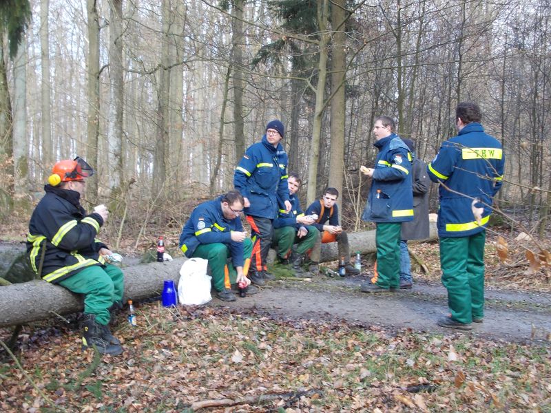 Waldweg gelegt, damit sich die THW-Helfer Lukas Reith, Christian