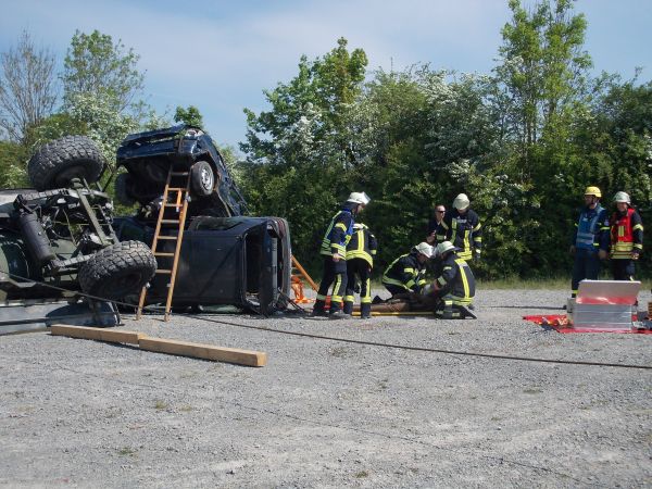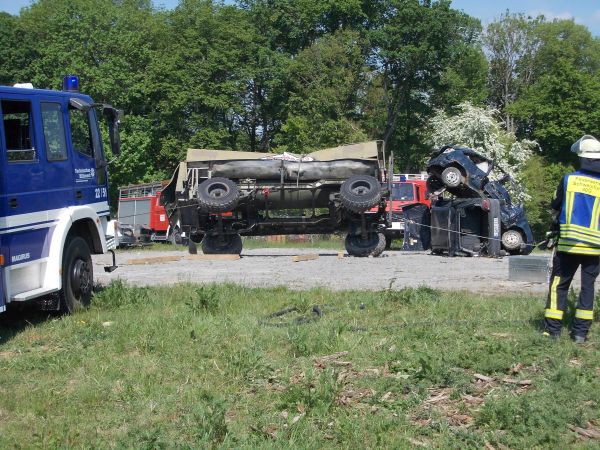 PKW begonnen.Zeitgleich wurden die Einsatzfahrzeuge mit Seilwinde in