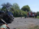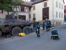 Einsatzteams den umgekippten Tankanhänger wieder auf. Um ca. 11:20