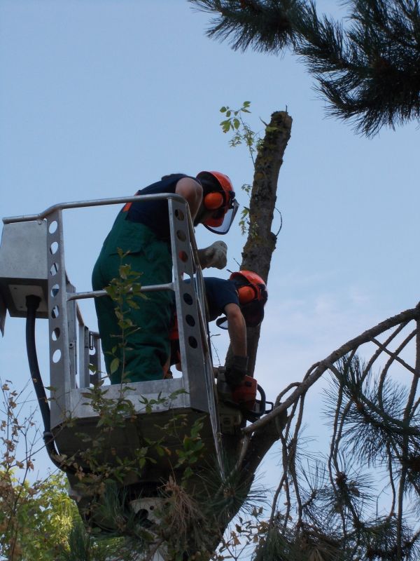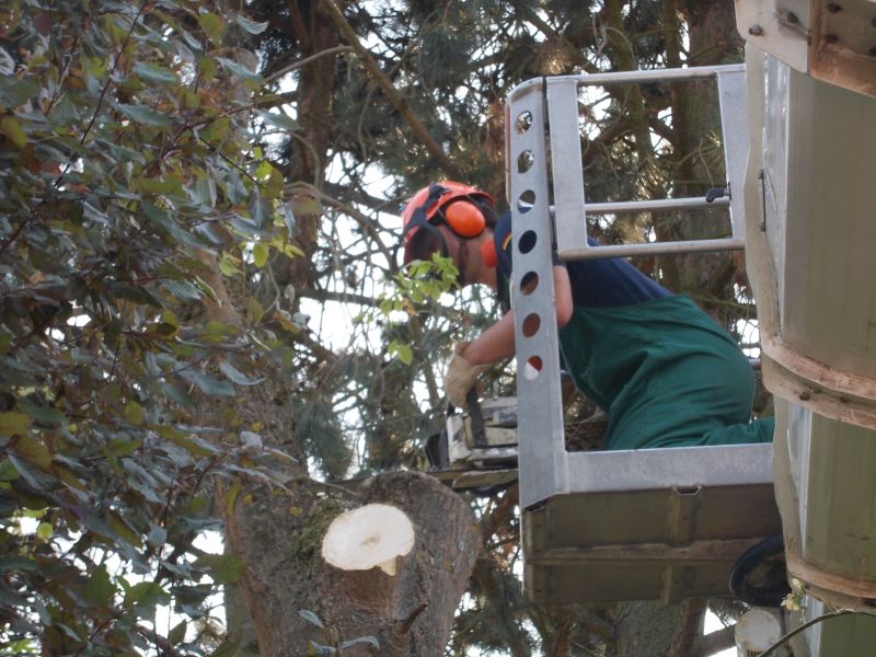 Fällung des Baumes. Mit Hilfe einer Hebebühne konnten die