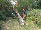 THW-Helfer die Äste nach und nach entfernen und im Anschluss den