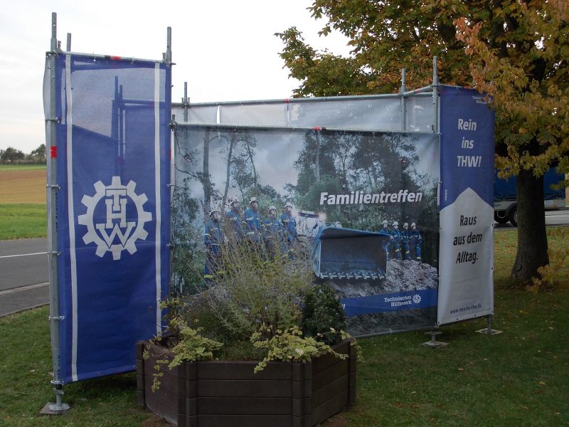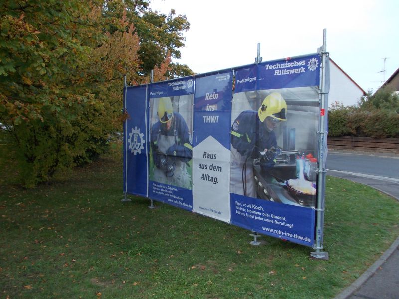 Die THW-Werbewand in Oberwerrn wurde gemeinsam von den THW-Helfern der Ortsverbände Gerolzhofen und Schweinfurt, einem Mitarbeiter der THW-Geschäftsstelle Breitengüßbach und mit der Unterstützung der Feuerwehr Oberwerrn aufgebaut.