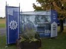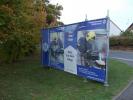Aufstellung der EGS-Werbewand (EGS = Einsatzgerüstsystem)