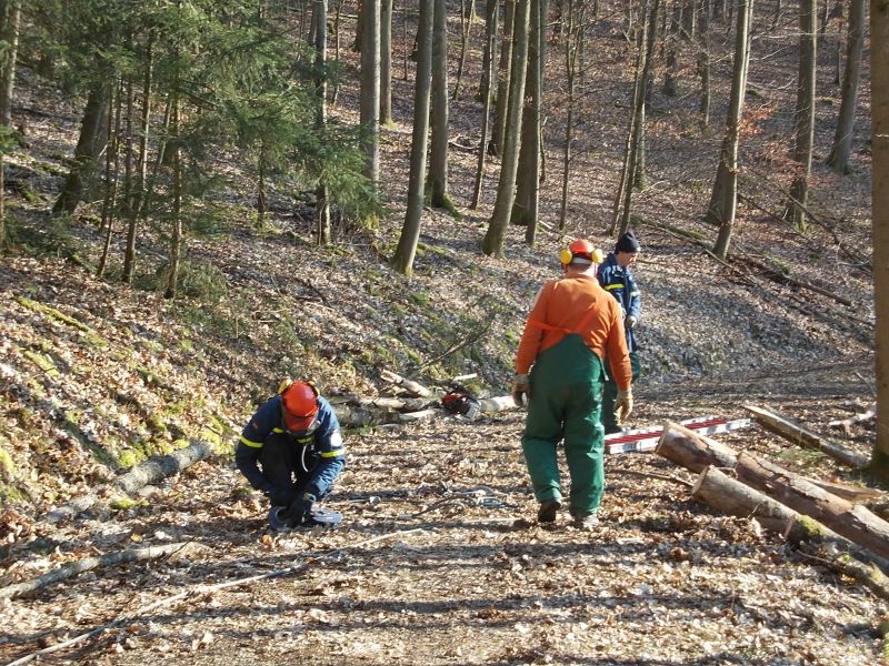 in der Praxis geĂŒbt werden. Die gefĂ€llten BĂ€ume lagen nun zwischen