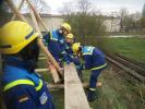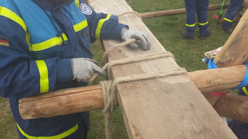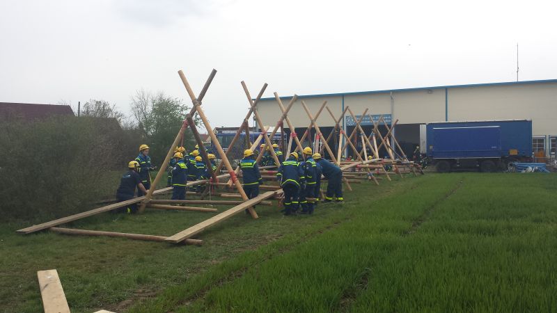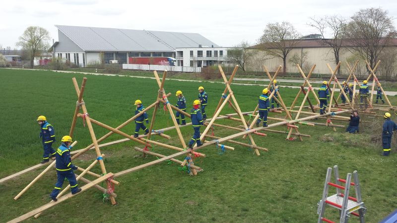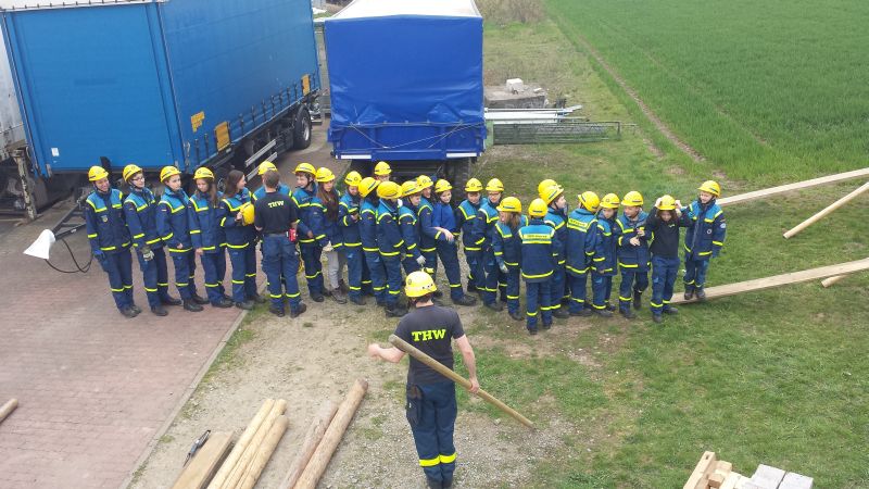 Auf dem THW-Gelände des Ortsverbands Gerolzhofen haben sich die Jugendgruppen der Ortsverbände Gerolzhofen und Schweinfurt zum gemeinsamen Bau eines Trümmerstegs getroffen.