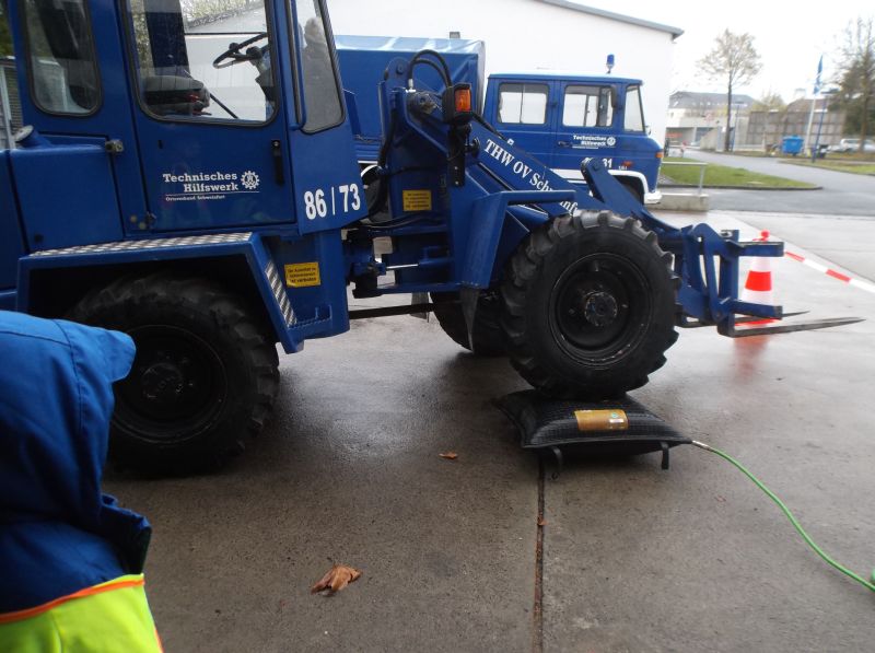 den Radlader des THW-Ortsverbandes anheben.
