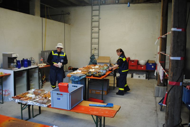 Vorausteam der FFW an und brachte Biertischgarnituren und Feldbetten