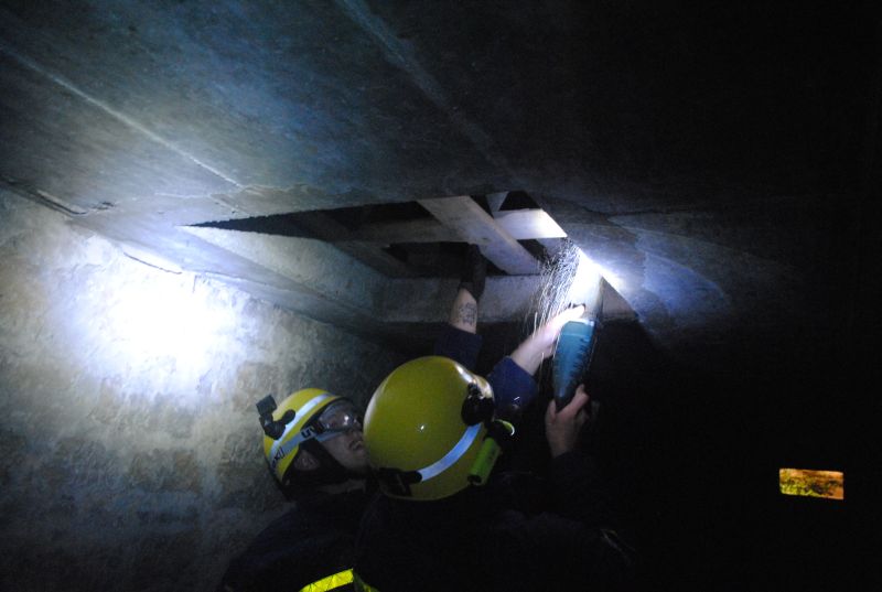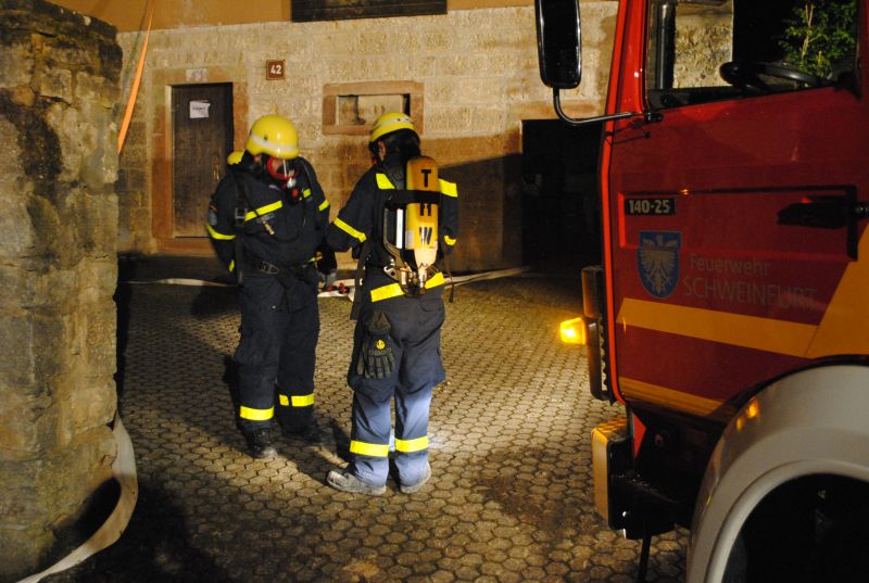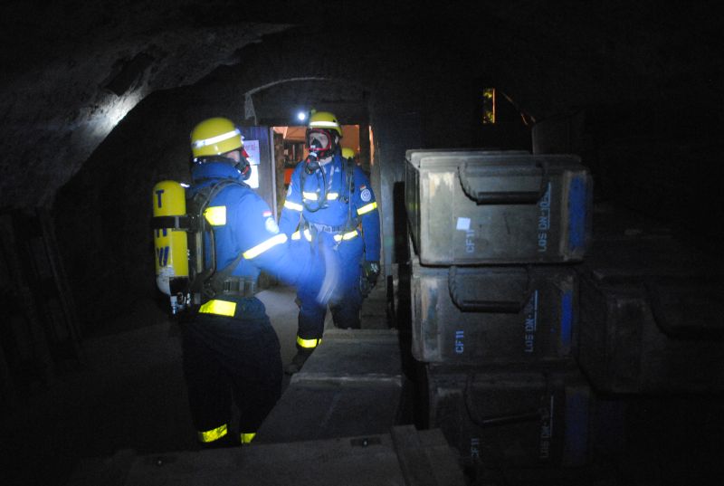 Aufgabe, versperrte Zugänge in Gebäude zu öffnen, unter Atemschutz