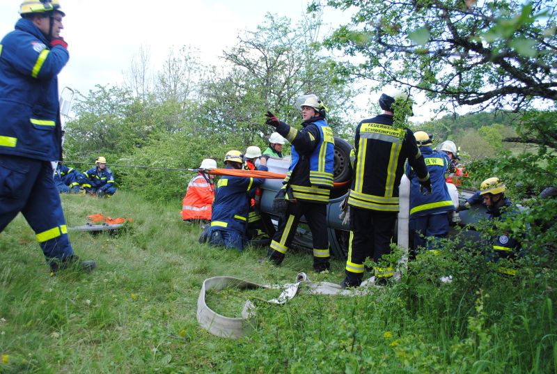 Dabei galt es Personen aus einem auf dem Dach liegenden Fahrzeug zu