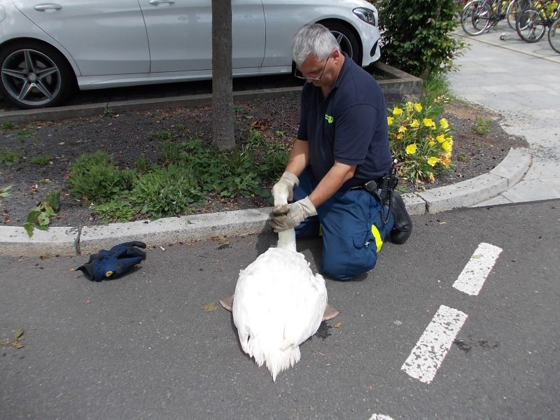Land setzen. Nach einem Besuch beim Tierarzt konnte der Schwan am