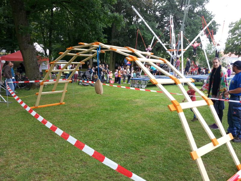 Leonardo-BrĂĽcke konnten die Besucher den einfachen BrĂĽckenbau mit