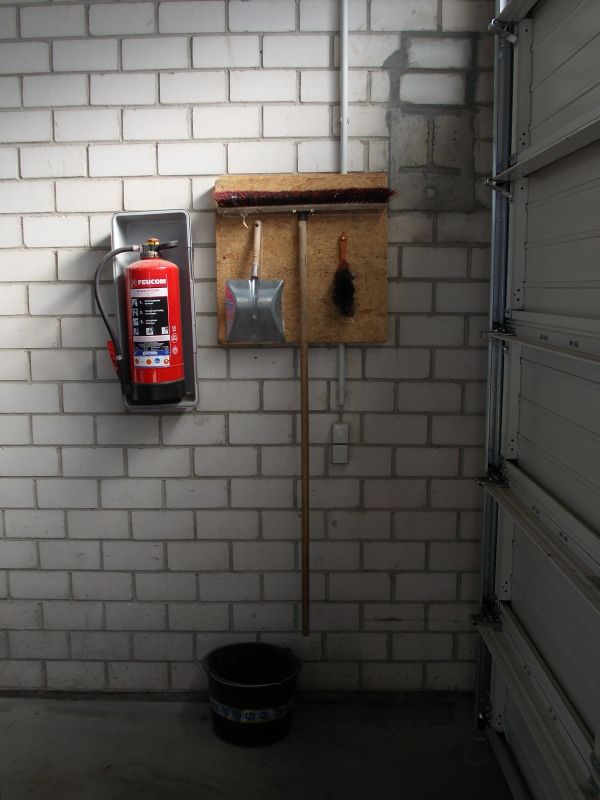 Ein fleißiger Helfer hat in zwei Hallen einen Halter für einen großen Besen, sowie für einen Handfeger und eine Schaufel angebracht. Damit gehört die Suche nach diesen Reinigungsgeräten der Vergangenheit an.