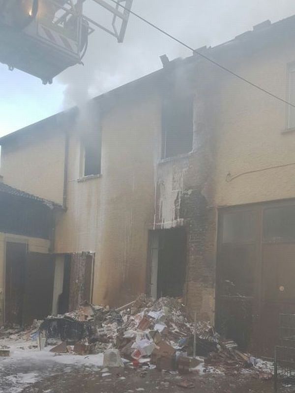 Der THW-Baufachberater mit seinem kleinen Voraustrupp unterstützte die Einsatzkräfte nach der Brandbekämpfung. Aufgrund der Wasserlast wurde eine akute Einsturzgefahr festgestellt und Räumarbeiten eingeleitet.