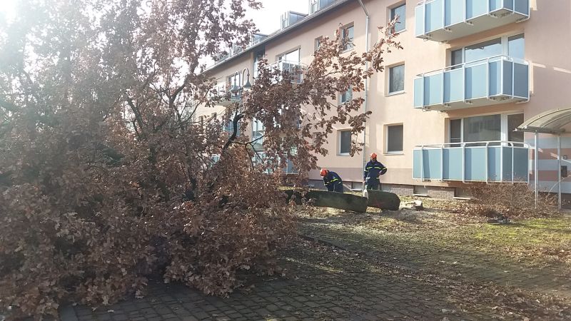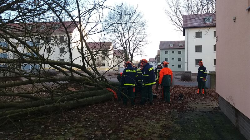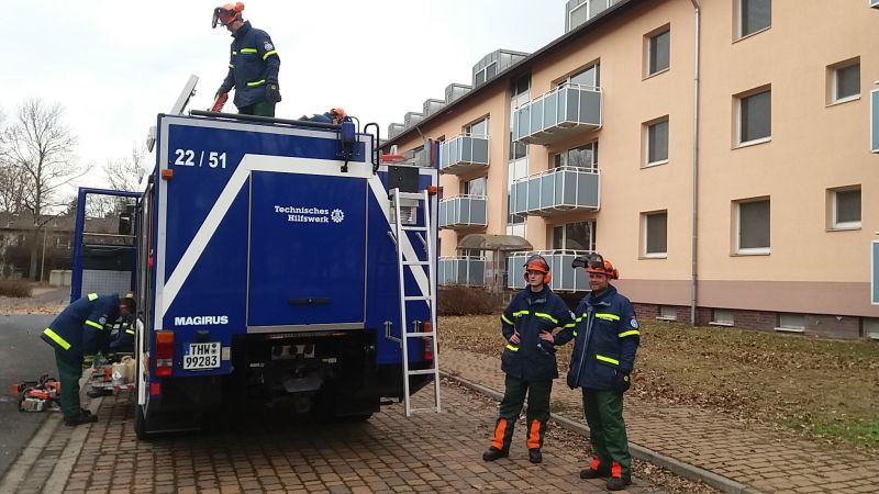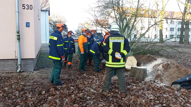 Die Fortsetzung der gemeinsamen KettensÀgeausbildung der Feuerwehr Schweinfurt und des THW-Schweinfurt erfolgte unter der Leitung von Karl-Heinz Thiemer (FW SW) in der Wohnsiedlung Askren Manor.