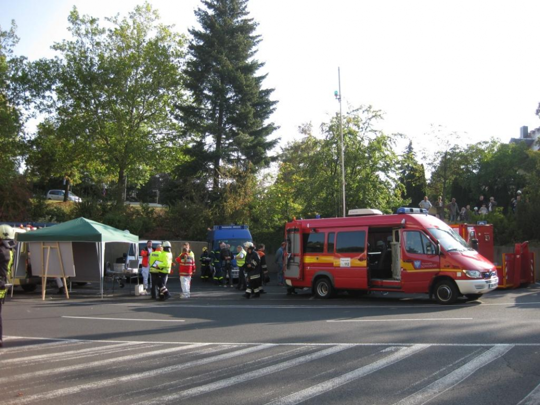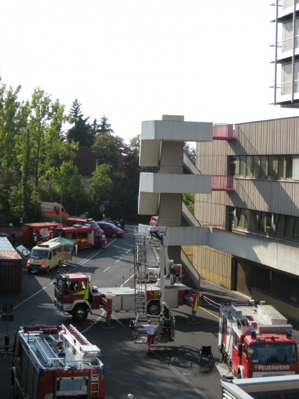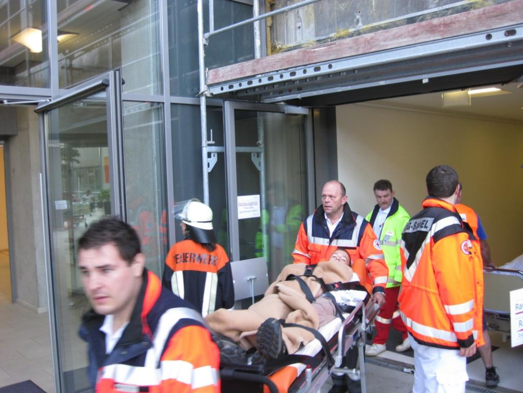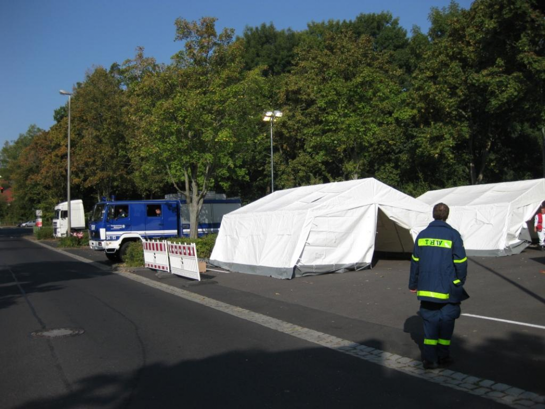 Zum Abschluss der Brandschutzwoche in Schweinfurt fand am letzten Tag unter den Augen der Oberbürgermeisterin Gudrun Grieser die Jahresübung der BOS-Organisationen Schweinfurts statt. Aufgabe war es eine Station im 7. Stock des Leopoldina Krankenhauses zu Evakuieren. Die Hauptaufgabe des THW Ortsverbandes Schweinfurt bestand darin eine Verletztensammelstation in Zusammenarbeit mit dem Arbeiter Samariter Bund Schweinfurt (ASB) am Sportgelände der TG-Schweinfurt aufzubauen und mit Strom und Licht zu versorgen. Dies klappte in kürzester Zeit und es konnten zeitnah die 24 "Patienten" in Empfang genommen werden. Diese wurden von der Jugendfeuerwehr der Stadt Schweinfurt und der Jugendgruppe des Ortsverbandes Schweinfurt je zur Hälfte gestellt. Auch für Sie war es eine besondere Erfahrung bei solch einer großen Übung beteiligt zu sein. Insgesamt nahmen an der Übung rund 200 Einsatzkräfte teil. Das THW Schweinfurt stellte mit knapp über 50 Helfern eines der größten Kontingente , was auch bei der späteren Verpflegungsausgabe der Leopoldina Küche auffiel. Gelobt wurde von Ordnungsreferent Jürgen Montag die gute Zusammenarbeit zwischen allen Organisationen und der weitgehend störungsfreie Ablauf der Übung. Zeitungsartikel Tagblatt 29.10.2009