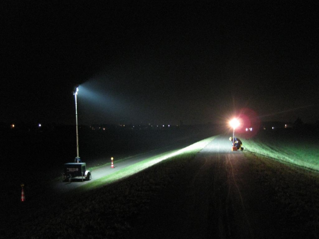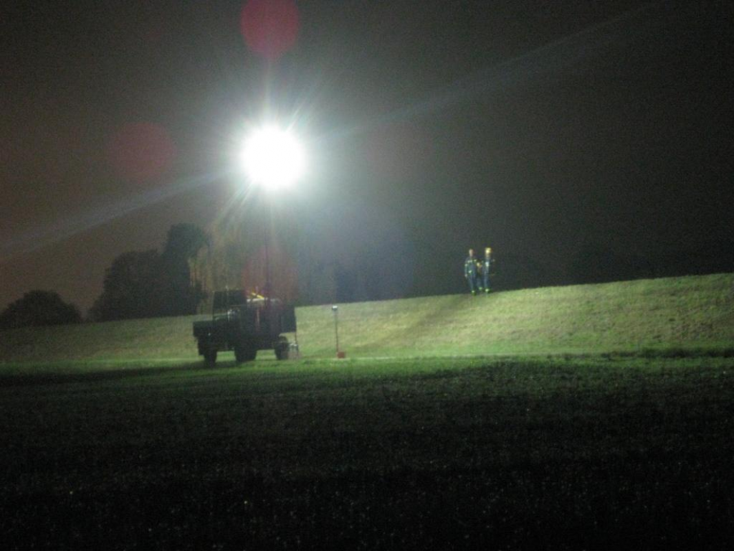 Beleuchtungsübung an einem Deich in der Nähe von Bergrheinfeld