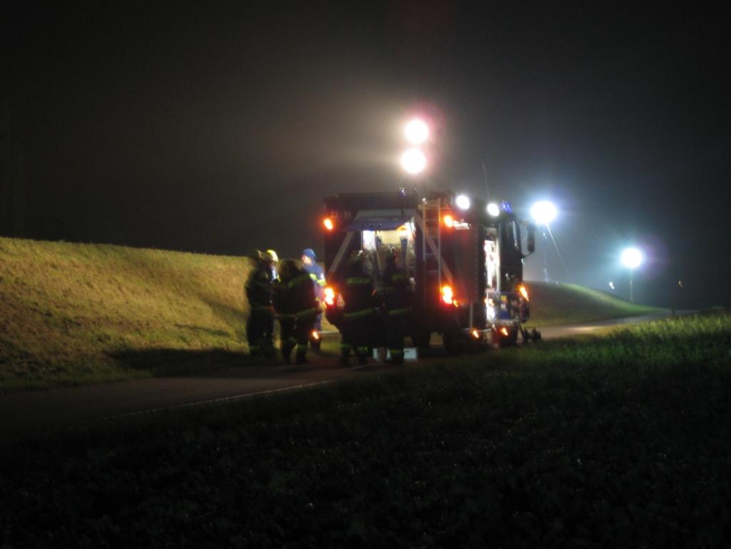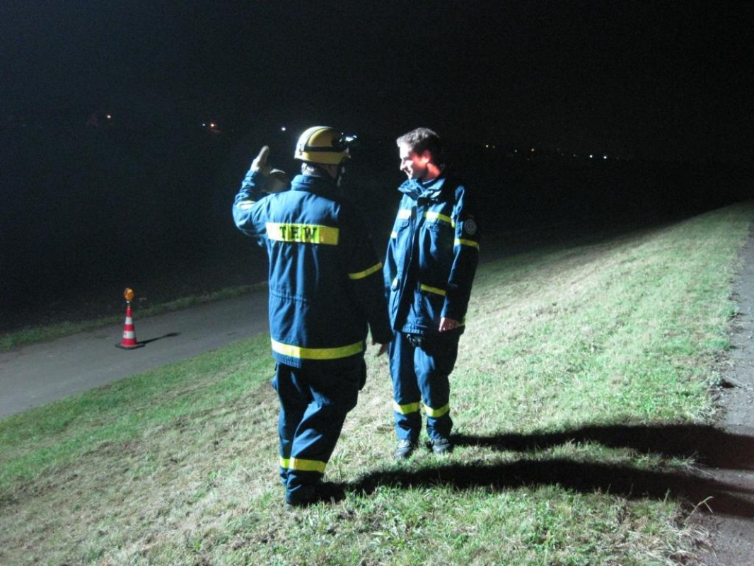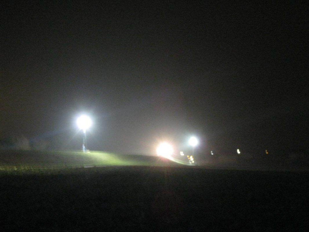 An einem nebeligen Freitagabend war es soweit. Die Beleuchtungsmöglichkeiten des Technischen Zuges, sowie die Fähigkeiten zum schnellen Aufbau sollten ausgetestet werden. Eine Strecke von etwa einem Kilometer galt es mit Licht zu versorgen. Diese Erfahrungen sollen für die etwaigen Arbeiten am Deich während Hochwassereinsätzen und Ausleuchten längerer Strecken genutzt werden.