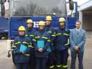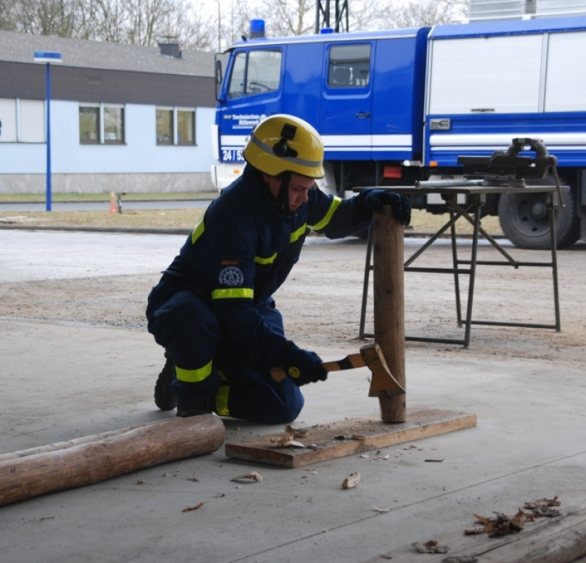 Insgesamt 17 junge Helferanwärter aus ganz Ober- und Unterfranken, darunter eine Frau, wurde am vergangenen Samstag die Grundausbildungsprüfung im THW-Ortsverband Schweinfurt abgenommen. Diese ist der Abschluss der rund sechsmonatigen Grundausbildung, die in den jeweiligen Heimatortsverbänden durchgeführt wurde. Die Prüfung erstreckte sich vom Einsatz der Rettungsschere, dem Stromerzeuger und sonstiger technischer Einsatzmittel über das Anheben und Bewegen von schweren Lasten bis hin zur Holz- und Metallbearbeitung. In der Teamprüfung galt es unter Zeitbegrenzung eine praktische Einsatzaufgabe zu lösen und dabei die Teamfähigkeit unter Beweis zu stellen. Neben den praktischen Fähigkeiten wurden aber auch theoretische Kenntnisse gefordert. Vorschriften über den Katastrophenschutz, theoretische Einsatzgrundlagen und Kenntnisse über die Einsatzorganisation THW wurden in einem schriftlichen Test abverlangt. Alle Helfer überzeugten unter den Augen der 10-köpfigen Prüfungskommission mit hervorragenden Leistungen. Sie werden demnächst in den technischen Zügen Ihrer Ortsverbände als Teil der über 80.000 ehrenamtlichen Kräfte der Katastrophenschutz- und Einsatzorganisation des Bundes Dienst tun. Die Prüflinge stammen aus folgenden Ortsverbänden: Bamberg, Hassfurt, Gerolzhofen, Mellrichstadt, Bad Staffelstein, Schweinfurt Auf dem Bild von links nach rechts: Julian Bäuschlein, Sebastian Spomer, Tobias Birkner, Robert Schwarz, Manuel Tilgner, Ortsbeauftragter Jörg Opper
