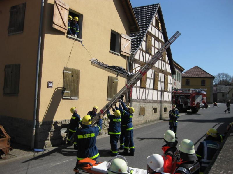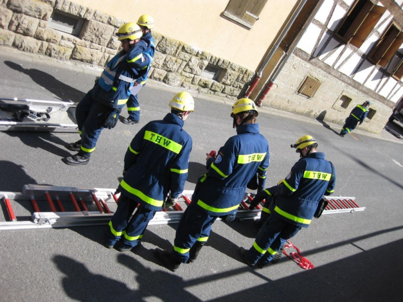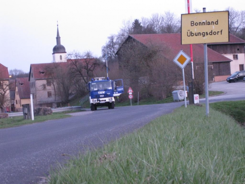 Zahlreiche Hilfskräfte des Arbeiter-Samariter-Bundes Schweinfurt, der Johanniter Schweinfurt, der Freiwilligen Feuerwehr Wülfershausen und des THW Schweinfurt waren im Zeitraum vom 16. bis zum 18. April 2010 in das leer stehende Dorf Bonnland mitten auf dem Truppenübungsplatz Hammelburg angereist, um in mehreren verschiedenen Szenarien der Katastrophe Herr zu werden. Dabei übernahm das THW Schweinfurt die Einsatzleitung der eigenen Einheiten sowie der Feuerwehr, während die Rettungsdienste vom fabrikneuen Einsatzleitwagen des ASB aus koordiniert wurden. Unter anderem galt es, Verletzte aus mehreren Metern Höhe schonend per Leiterhebel zu retten oder aus einem Kanalschacht zu befreien. Besonderes Fingerspitzengefühl war beim Abseilen eines Verunfallten gefragt, der sich unmittelbar unter dem Scheunendach schwere Verletzungen zugezogen hatte. Auch das Befreien aus Autowracks nach einem Verkehrsunfall erwies sich als Herausforderung, da die Fahrzeuge schwer zugänglich auf der Seite lagen. Bei den nächtlichen Einsatzszenarien zeigte sich die Bedeutung der verschiedenen Beleuchtungsmaterialien des THW, mit denen der Unglücksort taghell ausgeleuchtet wurde. Auch bei der Vermisstensuche stellte das THW in Zusammenarbeit mit den anderen beteiligten Hilfsorganisationen sein Können unter Beweis. Beim Vordringen und bei der Befreiung von Verschütteten erwiesen sich neben der Brechstange auch Gerätschaften wie Büffelwinde, Hebekissen oder der neue Drucklufterzeuger des THW als hilfreich. Außerdem ermöglichten Betonkernbohr- und Plasmaschneidegerät eine schnelle Rettung der Verletzten. Auch das Einsatzpotential der verschiedenen Pumpen und der Verbau von Sandsäcken nach einer Flutkatastrophe wurde eindrucksvoll demonstriert. Des Weiteren gab es für die Feuerwehr Wülfershausen einige Gebäudebrände zu bekämpfen, bei denen auch die Atemschutzgeräteträger des THW Schweinfurt eingesetzt wurden. In allen Szenarien wurden die Verletzten zum durch die Johanniter eigens eingerichteten Behandlungsplatz transportiert. Die Übung, die vermutlich für das meiste Aufsehen bei der im benachbarten Ortsteil übenden Bundeswehr gesorgt hat, war das Löschen eines auf abschüssigem Gelände stehenden Fahrzeugs mit Schaum, bei der sich das Löschmittel anschließend den Berg hinab unmittelbar auf die Hauptstraße von Bonnland ausbreitete. Alles in allem gab diese Übung dem Technischen Hilfswerk Schweinfurt wieder die Möglichkeit, die ganze Bandbreite an Einsatzmöglichkeiten zu nutzen, die Zusammenarbeit mit anderen Hilfsorganisationen weiter auszubauen und zu verbessern und nicht zuletzt das Dorf Bonnland vor einer großen Katastrophe zu bewahren. Nils Hinkel