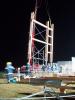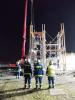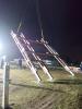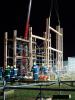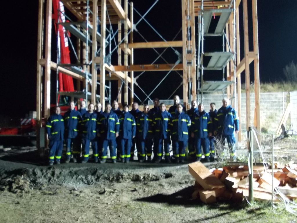 Wie schon die zwei Wochenenden vorher war am Freitag 23.11.2012 um 17:00 Starttermin. Mit Spannung ging es diesmal nach Sennfeld, wo schon der Kran auf uns wartete -- das Aufstellen der vorgefertigten Turmteile stand an. Nach einigen Vorbereitungen wurde das erste Teil eingehoben, und das Zweite ... bis gegen Mitternacht das obligatorische "Richtfestfoto" (ca. 2/3 der insgesamt beteiligten Mannschaft) gemacht werden konnte. Am Samstag um 7:00 starteten wir zum Endspurt durch. Es galt noch einige Sache zu erledigen: z.B. weitere Streben einbringen, oder eine 4-teilige Treppe aufbauen und einsetzen. So gegen 20:00 war unser ÜBUNGS-Umfang am "Turmbau zu Sennfeld" abgeschlossen.