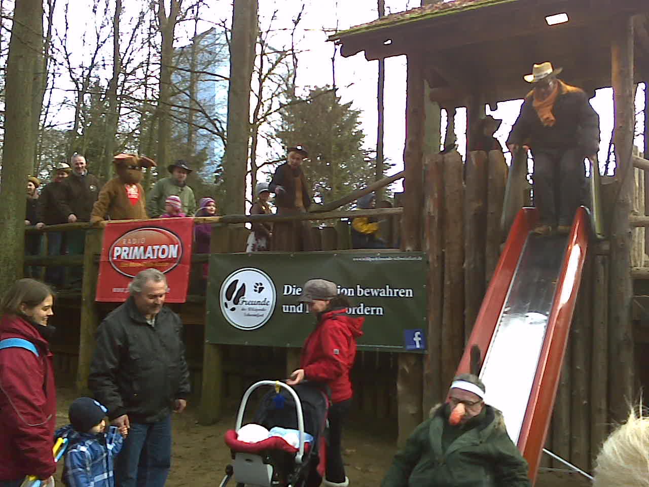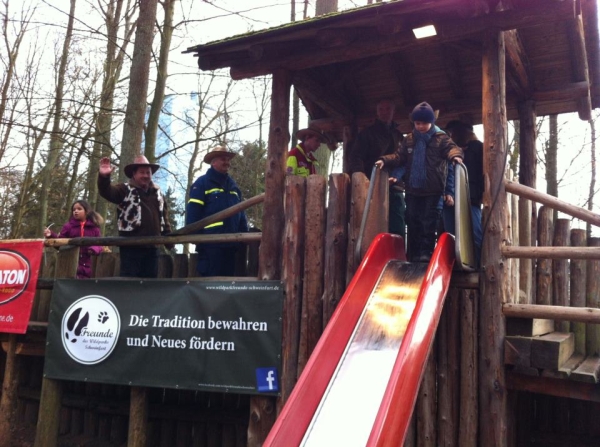 Wir waren dabei und mitten drin, beim 24-Stunden-Dauerrutschen im Wildpark an den Eichen -- vom 02.02. 15:00 Uhr bis 03.02. 15:00 Uhr. Die "Freunde des Wildparks Schweinfurt e.V." haben sich mit dieser Aktion am Vereinsgewinnspiel von Radio Primaton beteiligt. Sollten sie gewinnen, wird die Gewinnsumme von 10.000 Euro die Basis für die Renovierung des Indianerforts sein -- und damit für noch mehr kostenlosen Spaß im Wildpark sorgen. Wäre klasse, wenn die Wildparkfreunde mit Hilfe eurer Stimmen gewinnen.