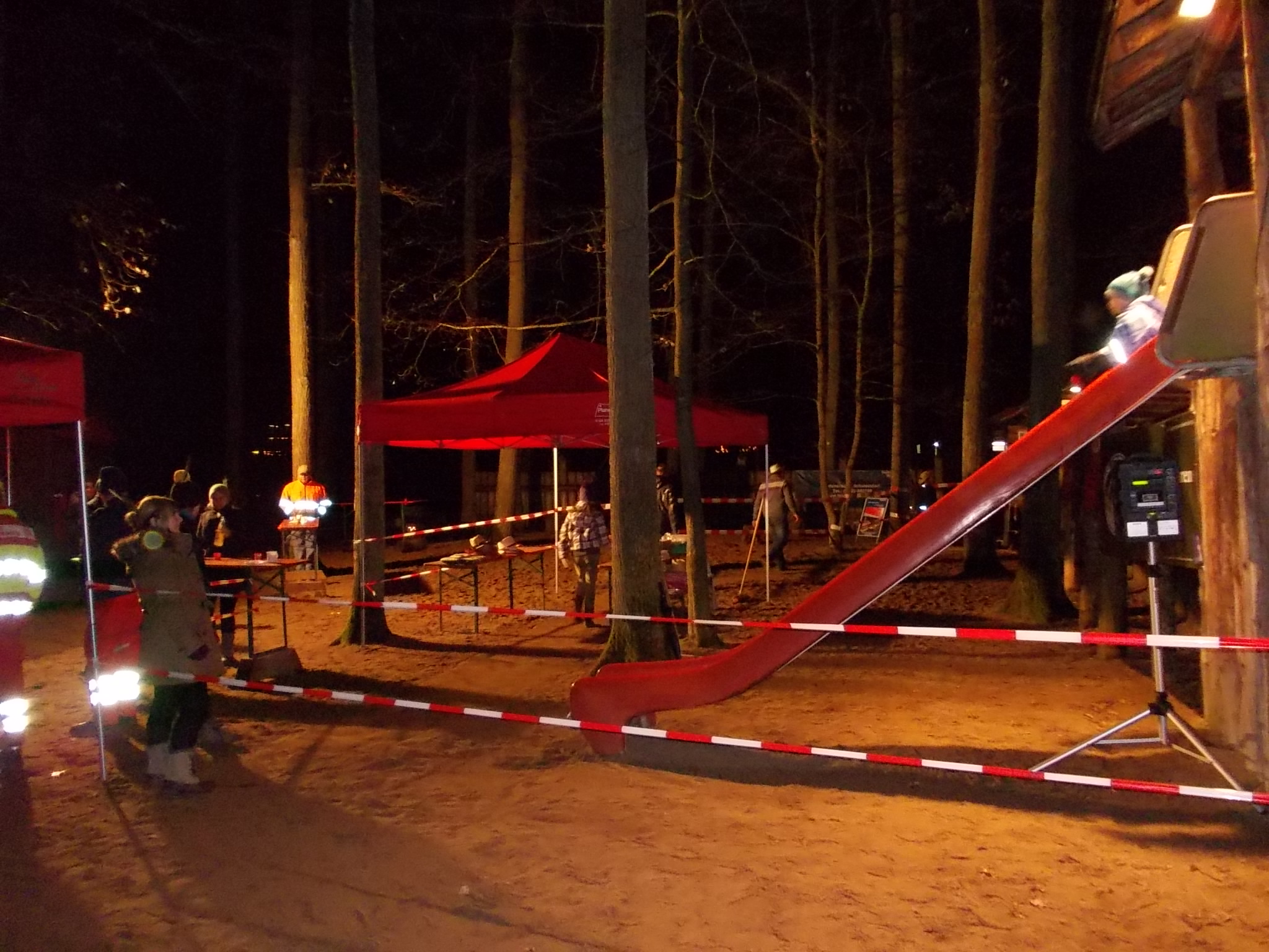 Da es ein 24-Stunden-Dauerrutschen war, wurde für die Nachtstunden wurde eine gute Beleuchtung benötigt, die wir natürlich gerne zur Verfügung gestellt haben. Werbung für das THW und besonders für unseren Ortsverband konnten wir ebenfalls machen.