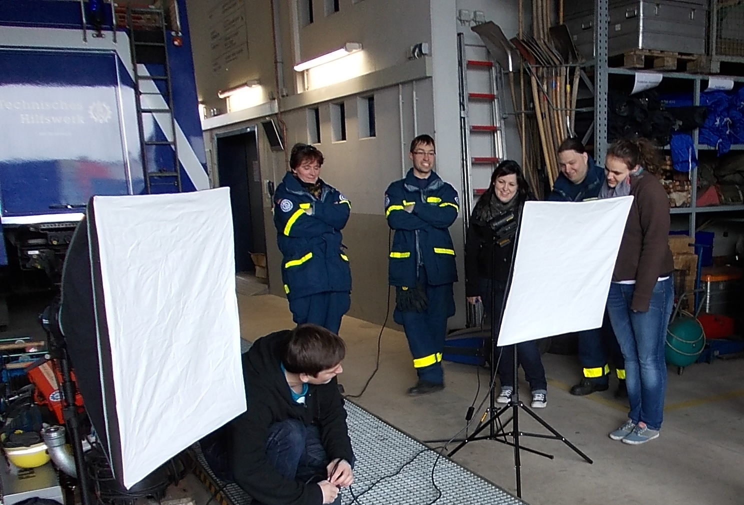 Helferinnen und Helfer aus dem Geschäftsführerverband Bamberg trafen sich zum Foto-Shooting für neue Werbeplakate in der Unterkunft des Ortsverbandes Bamberg. Neben den notwendigen Bildern für die Plakate gab es natürlich auch eine Menge Spaß trotz des ungemütlichen Wetters. Zwischendurch waren immer wieder Besprechungen zu den Szenen erforderlich und die notwendigen Ausrüstung musste vorbereitet werden. Wer bei den Fotos auf Hinweise zu den neuen Plakaten hofft, den müssen wir enttäuschen die Spannung soll ja erhalten bleiben.