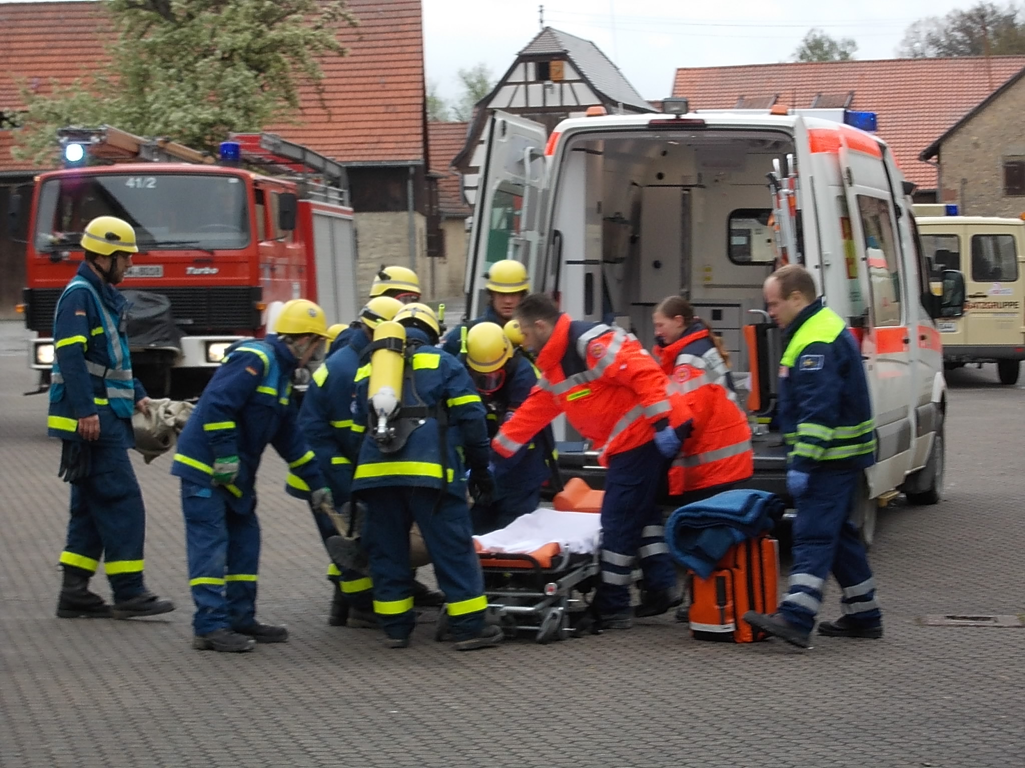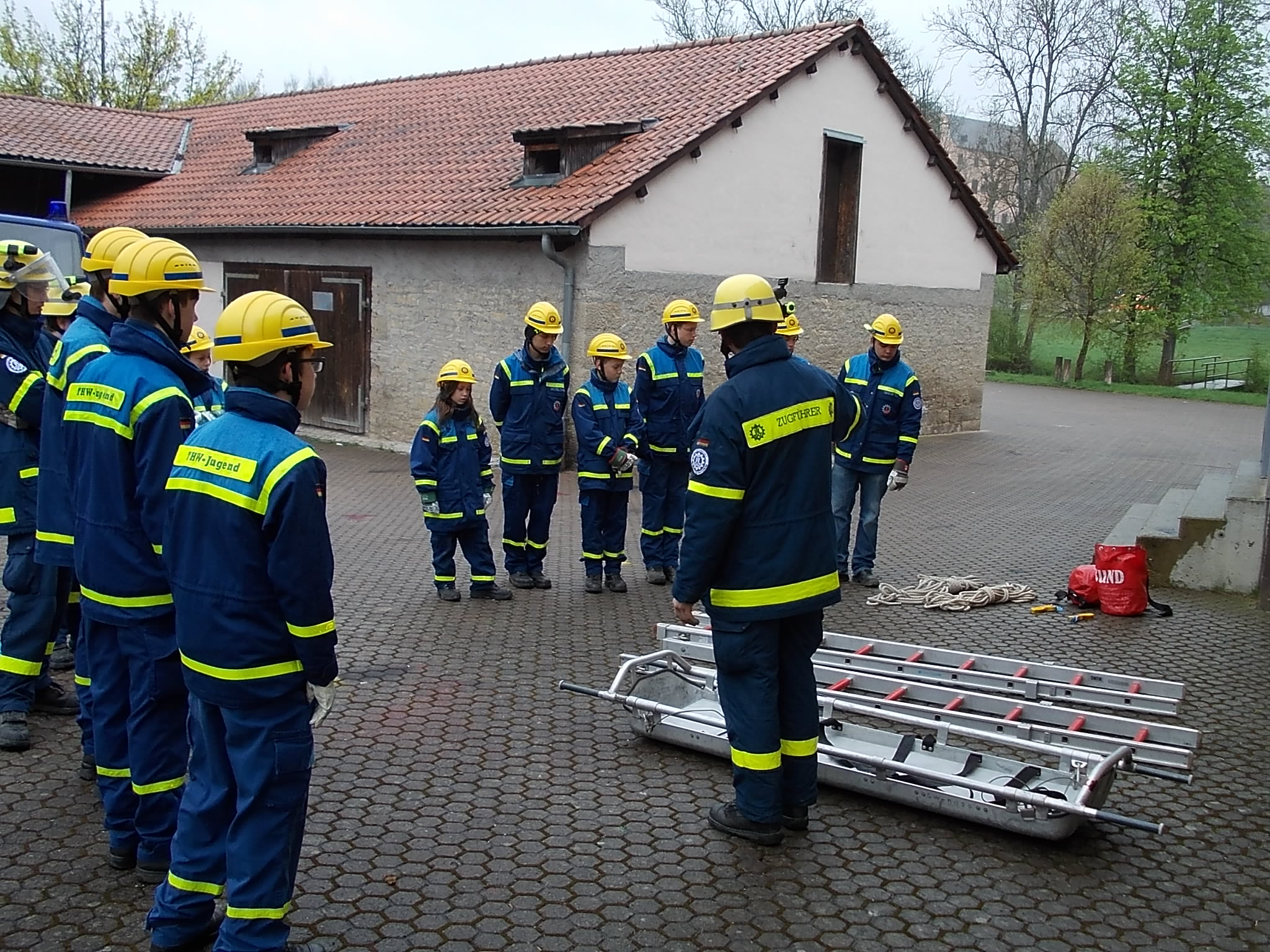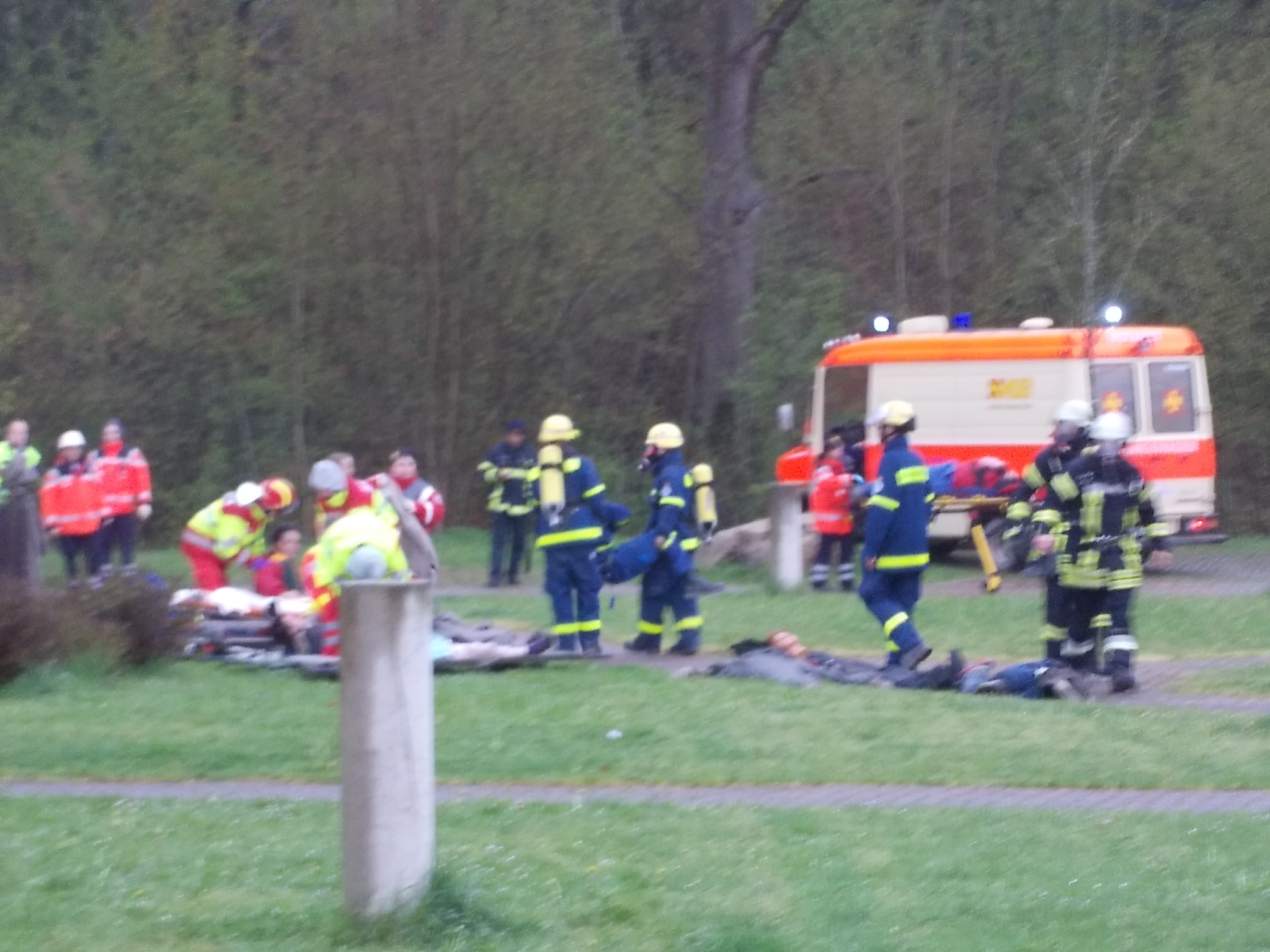 Für einige Teilnehmerinnen und Teilnehmer der Feuerwehr Schweinfurt, des Arbeiter-Samariter-Bunds, des Roten Kreuzes, der Johanniter-Unfallhilfe und des Technischen Hilfswerks ist sie schon Tradition die Bonnland-Übung. Im Vorfeld wurden die Übungen gemeinsam geplant einmal spezielle Übungen für jede einzelne Hilfs- und Rettungsorganisation, und dann die gemeinsamen Übungen. Diesmal haben sich gut 100 Helferinnen und Helfer zusammengefunden beeindruckend! Auch das Wetter hat sich auf die Übung eingestellt. Pünktlich am Freitagnachmittag hat es angefangen zu regnen mal mehr, mal weniger und dazu gab es noch einen unangenehm kalten Wind. Am Freitag haben sich die Aktiven aus den teilnehmenden Hilfs- und Rettungsorganisationen nachmittags in ihren Unterkünften getroffen, die Ausrüstungen verladen und dann war Abmarsch zum Truppenübungsplatz Hammelburg genauer gesagt nach Bonnland. Kaum jemand hat sich Hoffnungen auf einen gemütlichen Abend gemacht, denn wie immer wurde die aufkommende Dunkelheit für die ersten Übungsteile genutzt. Am Samstag wurden die Helferinnen und Helfer durch die Johanniter- und THW-Jugend verstärkt. Vormittags übten die einzelnen Einheiten ihre eigenen Schwerpunkte. So stand für die THW-Jugend am Vormittag eine Ausbildungseinheit zur Rettung von Personen aus einem Gebäude auf dem Programm und die THW-Helfer haben sich mit der Schleifkorbtrage und einem Dummy über die Hindernisbahn gewagt eine besondere Herausforderung. Zur Mittagszeit sind die angereisten Jugendlichen dann in ihre zweite Rolle geschlüpft sie wurden als Verletztendarsteller in die gemeinschaftlichen Nachmittagsübungen integriert. Eine Aufgabe, die ihnen sichtlich Spaß gemacht hat. Am Abend verabschiedete sich die Jugend wieder und machte sich auf den Heimweg, während auf die Erwachsenen ein Grillabend als gemütlicher Teil auf dem Programm stand sie hatten es sich aber auch wirklich verdient. Auch am Sonntag gab es noch Übungseinlagen, bevor die Bonnland-Übung beendet wurde, und alle Einheiten wieder nach Schweinfurt zurückkehren konnten. In den Unterkünften war nicht gleich Feierabend, denn der liebe Regen und sein Freund, der Dreck, haben ihre Spuren am Material hinterlassen und diese mussten nun erst beseitigt und die Einsatzbereitschaft wieder hergestellt werden.