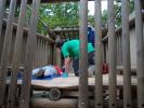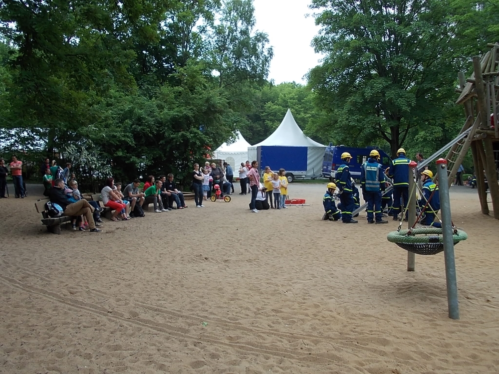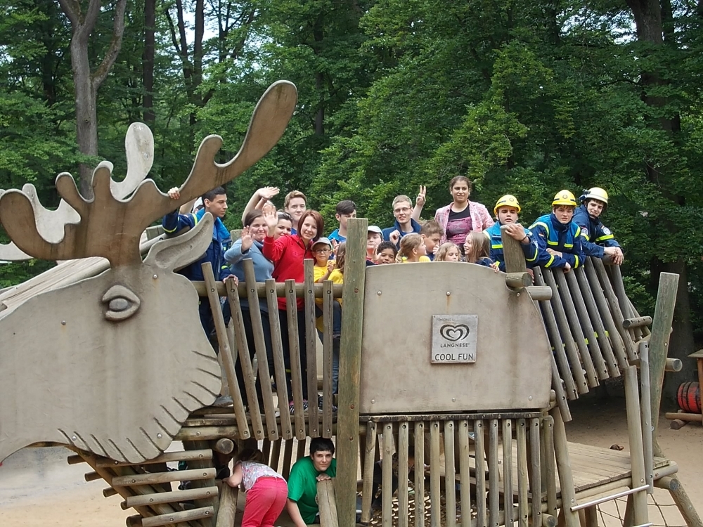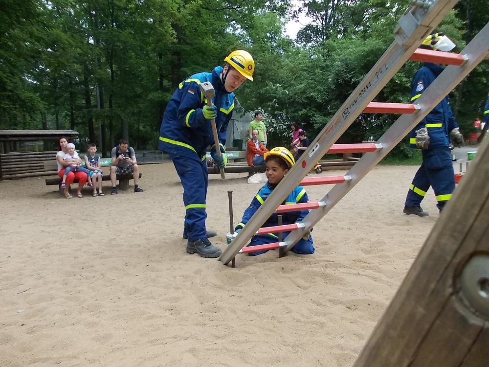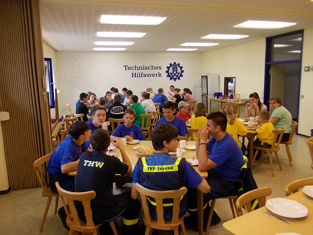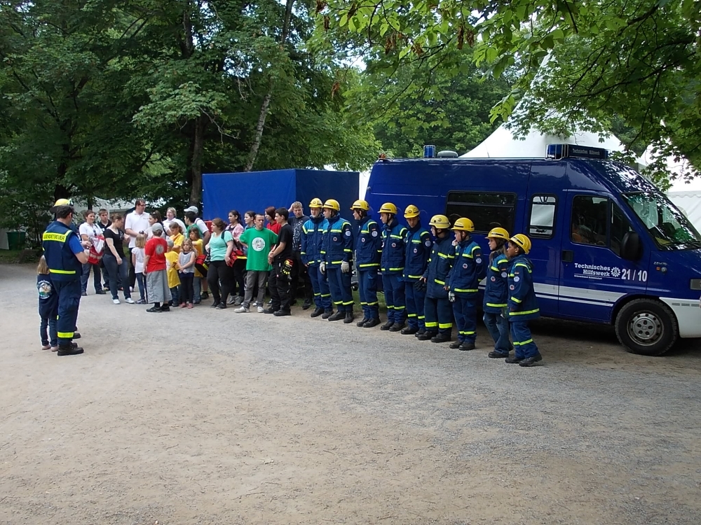 Die Jugend der Johanniter-Unfall-Hilfe (JUH) aus Giessen hat auf dem Rückweg von ihrem Bundeswettkampf in Regensburg Station beim THW in Schweinfurt gemacht. Zusammengefunden haben die beiden Jugendgruppen über ihren Ausbilder, der sich in Schweinfurt um die THW-Jugend kümmert und in Giessen neben seiner beruflichen Weiterbildung bei der JUH tätig ist. Die Johanniter-Jugend traf erst nach Mitternacht in Schweinfurt ein, wo sie schon von der THW-Jugend erwartet wurde. Nach dem Aufbau der Schlafstellen und dem ersten Beschnuppern ist es auch langsam still in der Unterkunft geworden. Beim Frühstück hat sich jeder bei seinen vertrauten Gesichtern an den Tisch gesetzt – das sollte sich aber im Laufe des Tages ändern. Es ging in den Wildpark an den Eichen zu einer gemeinsamen Übung. Zwei Jugendliche der JUH wurden geschminkt – fertig war der „Unfall“ auf dem Spielplatz. Die beiden Jugendgruppen hatten vorher noch nie zusammengearbeitet – OK – beim Start ruckelte es daher auch etwas, aber dann kamen sie in Fahrt. Der eine Verletzte wurde sehr schnell gefunden, versorgt und zum Sammelplatz an das Einsatzfahrzeug gebracht. Beim zweiten Verletzten war die Lage etwas verzwickter – er lag auf dem „Riesen-Elch“. Während die Johanniter-Jugend den Verletzten versorgte und betreute, baute die THW-Jugend eine „Leiterrutsche“, um den Verletzten mit einer Schleifkorbtrage von dem Klettergerüst zu transportieren. Nach gelungener Aktion gab es von den Zuschauern auch den verdienten Beifall. Gleich nach der Übung wurden von den beiden Jugendgruppen schon die nächsten gemeinsamen Treffen angedacht. Über das gemeinsame Mittagessen hinaus, bis zur Abfahrt wurden die Stimmen für einen Besuch in Giessen, oder auch ein zweites Treffen in Schweinfurt immer lauter. Alle hoffen auf ein Wiedersehen - besser kann eine Zusammenarbeit nicht laufen.