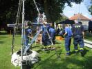 ein Dreibock zusammengesetzt und über den Schöpfbrunnen gestellt. Unweit davon