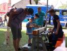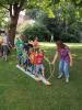 den Balken hämmern. Als Teamaufgabe für die jungen Besucher wurden zwei
