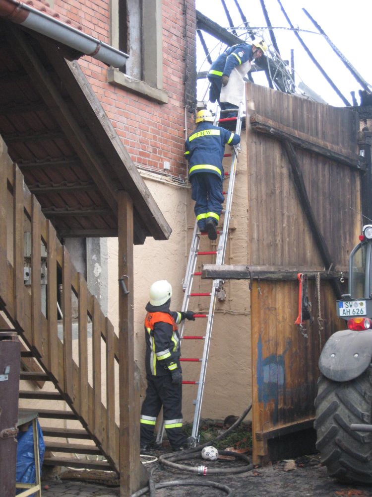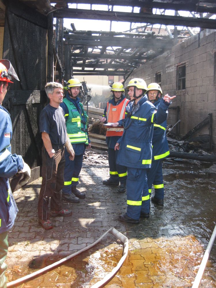 Einsatz zu Aufräum- und Abbrucharbeiten nach dem Brand eines Bauernhofs in Oberwerrn.