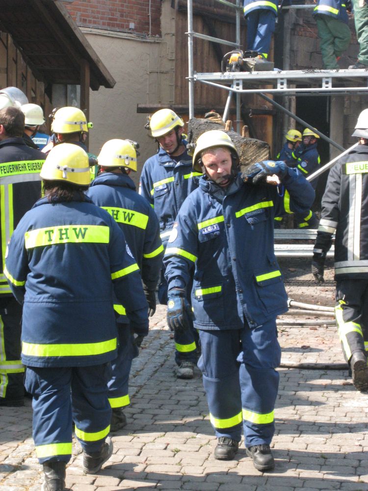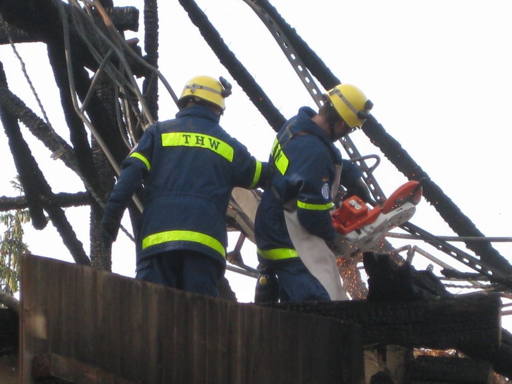 einsturzgefährdeter Gebäudeteile. Neben Kettensägen und Trennschleifer kamen